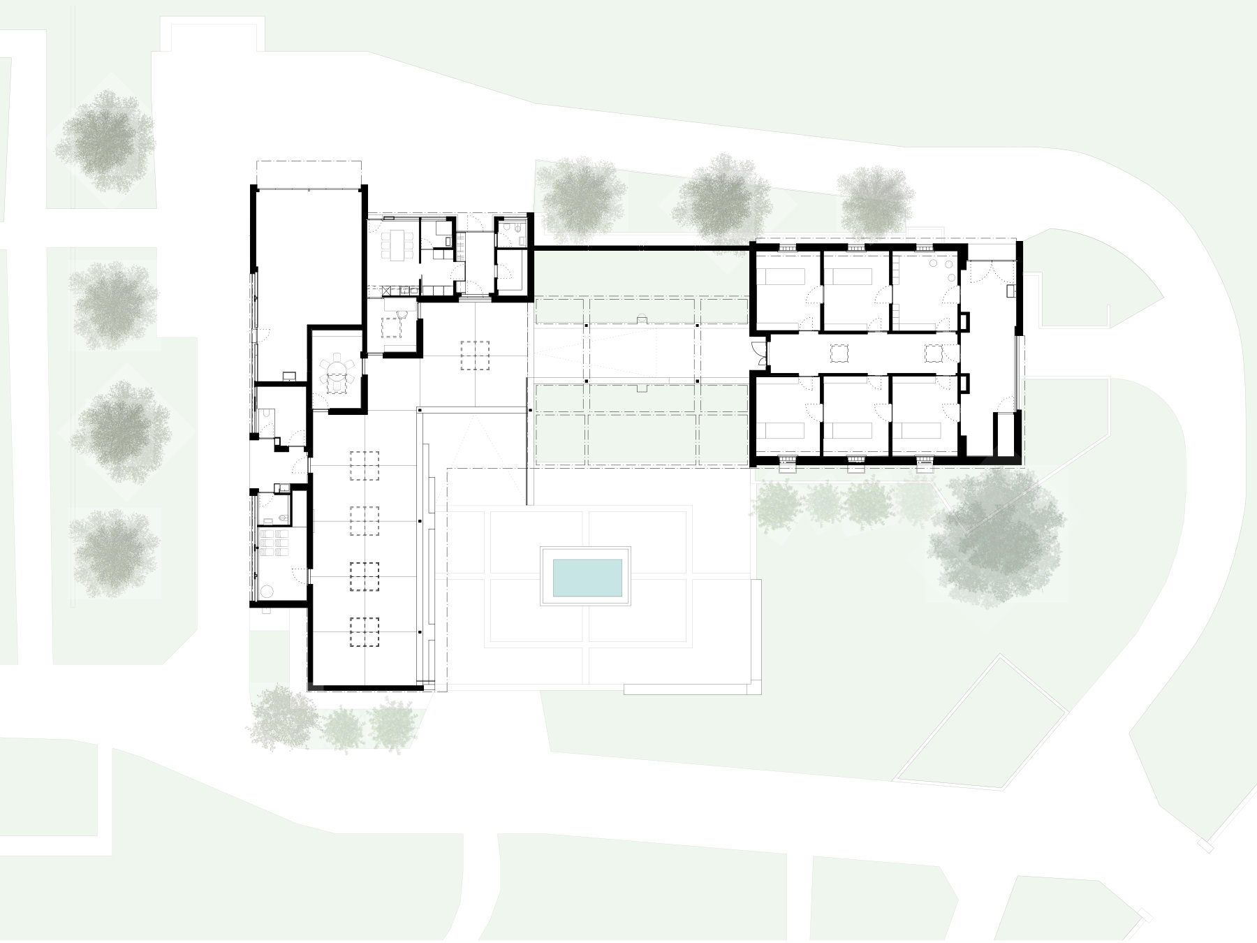 Der Sanierungsvorschlag des Friedhofgebäudes ist mit grosser Sorgfalt und Respekt gegenüber dem architektonischen Bestand konzipiert worden. Der ursprüngliche Charakter des Gebäudes bleibt erhalten.